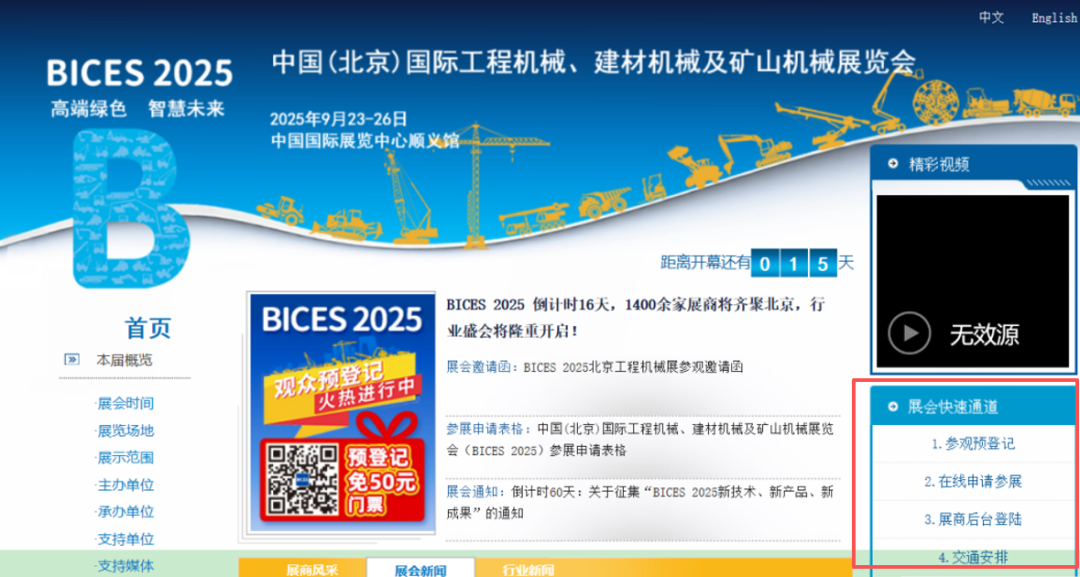 2.登录官方网站www.e-bice.org,找到右侧“展会快速通道”点击“参观预登记”
