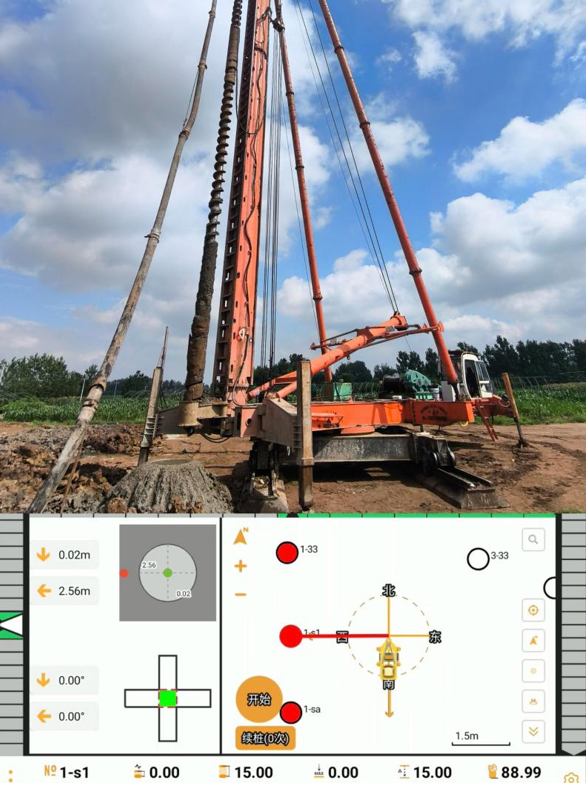 北斗智能桩机系统:为操作人员实时提供目标位置、倾斜角度、深度等施工数据,支持生成施工报表,有效提升成桩合格率,使得施工过程不再依赖于传统的测量人员放样、旁站观测或扶尺人员,减少了人力成本,提升了施工效率和质量,并降低了现场事故风险。