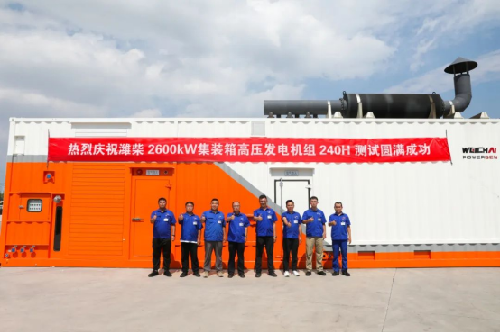 在七八月份之交的潍柴产业园,潍柴2600kW集装箱高压发电机组240小时测试获得圆满成功,具体包括20小时超负荷运行,220小时满负荷运行,100次起动及0-100%突加载等全部试验,再次刷新了数据中心发电机组起动测试行业标准,以实际作业充分验证了产品的高可靠性。
