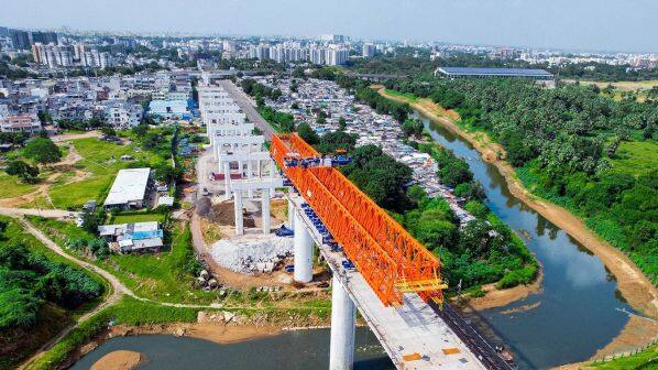 目前,孟买 - 艾哈迈达巴德高速线建设正稳步推进。320 公里的空中高架桥和 17 座河流桥梁已完工,BKC 和希尔帕塔之间 21 公里隧道持续施工,马哈拉施特拉邦帕加尔地区七座山岭隧道也在挖掘中,1800 根接触网支柱覆盖了 44 公里空中高架桥主线。