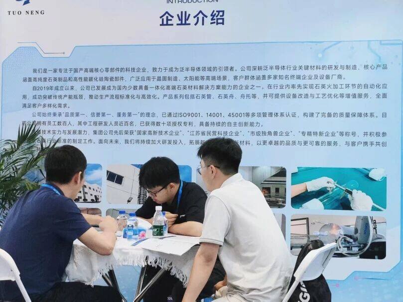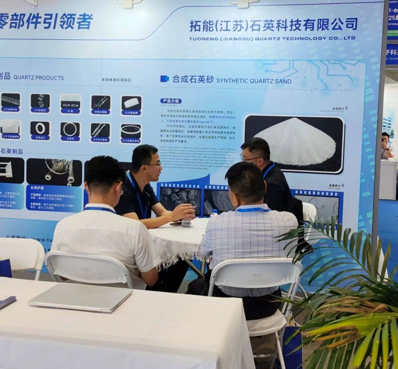 展会期间,拓能石英科技团队与来自晶圆制造、半导体设备及材料领域的客户和合作伙伴展开深入洽谈。公司代表详细介绍了产品在高温、耐腐蚀及高纯度环境下的性能优势,并就未来工艺升级中的材料需求与多家企业达成了初步合作意向。