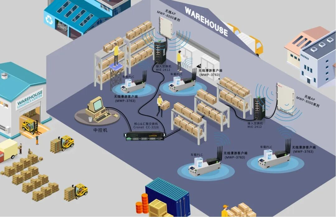 智能仓储系统由搬运、存取、输送和分拣四大系统构成,并以智能AGV为核心贯穿全流程。上海兆越通讯为此打造的AGV智能仓储解决方案,通过无线AP与漫游客户端构建高可靠网络,无缝连接导航定位、驱动控制系统与管理平台。该方案能实时回传AGV状态与视频数据至控制中心,实现精准调度与运维监控,关键解决了移动过程中无线网络稳定覆盖与AP间快速漫游的挑战,确保AGV系统高效稳定运行。