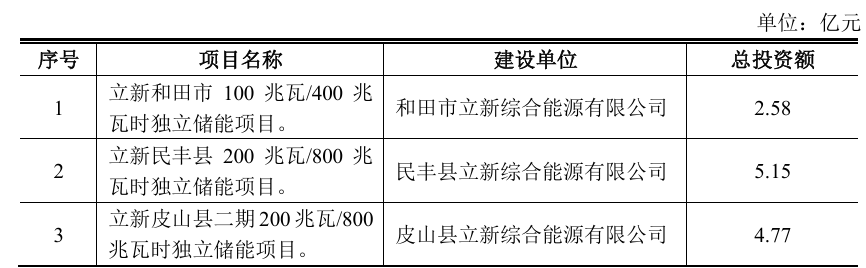 在项目推进方面,立新能源已在南疆地区取得实质性进展。今年5月,其三家全资子公司成功获得和田地区发改委核发的独立储能项目备案证,三个项目总体规模达500MW/2GWh,总投资约12.5亿元,具体包括和田市100MW/400MWh、民丰县200MW/800MWh以及皮山县二期200MW/800MWh独立储能项目。