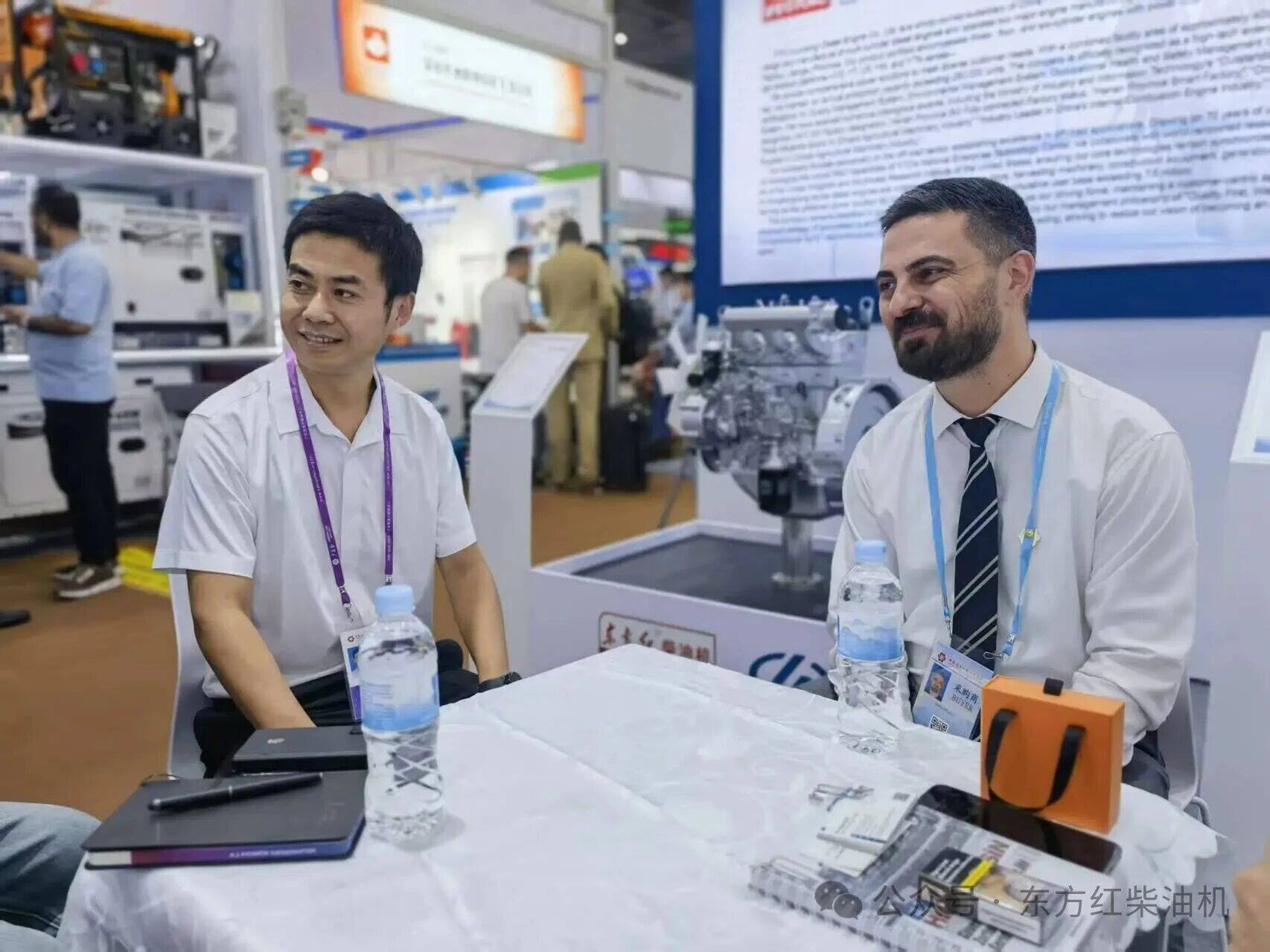 东方红柴油机是国内最具实力的非道路动力供应商,产品具有高可靠性,高燃油经济性,低噪音、低振动等综合维度比较优势,拥有70年的应用经验,品牌知名度和认可度高。近年来,公司积极筹划全球布局,以发电机组配套领域为支点,迅速打开国际贸易市场,目前产品已经远销东南亚、中东、远东地区、拉丁美洲以及俄语区,凭借过硬的产品质量和技术支持能力,获得了国外主机产品企业的高度认可,产品配套领域也逐渐从发电机组领域向其他领域延伸。展会期间,公司展位人气持续高涨,累计接待来自欧盟、东南亚、非洲等地区的采购商超300人次,其中新客户占比达65%,不少采购商在现场洽谈后,表现出浓厚的合作欲望,有的还主动提出赴生产基地考察。来自土耳其的采购商表示:“产品的可靠性与节能性能远超预期,期待与中国企业建立长期的供应链合作关系。”这种热烈反响,既印证了我司产品的核心竞争力,也凸显了广交会作为“贸易桥梁”的强大赋能作用。