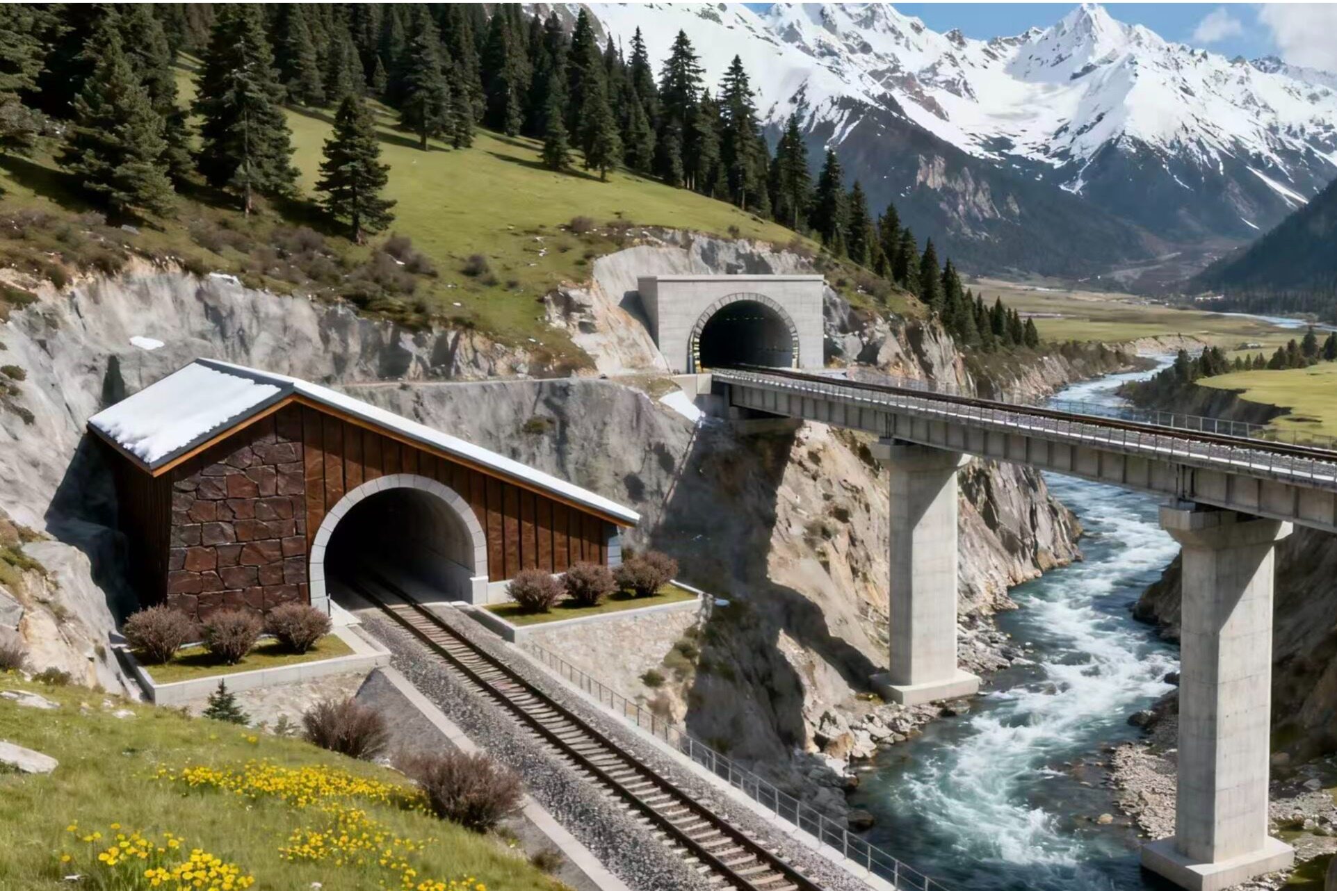 生态保护方面,项目严格遵循“最小扰动、最大保护”的原则,专门制定生态保护专项方案。线路规划避开自然保护区核心区域,对必经的林地、湿地路段采用桥梁跨越或隧道穿行的方式减少地表占用。施工期间将设置专项环保设施处理废水、废渣,同步开展边坡生态修复和植被重建工作,选用本地原生植物品种进行绿化,确保铁路建设与藏东南脆弱的生态环境相协调。关键词: