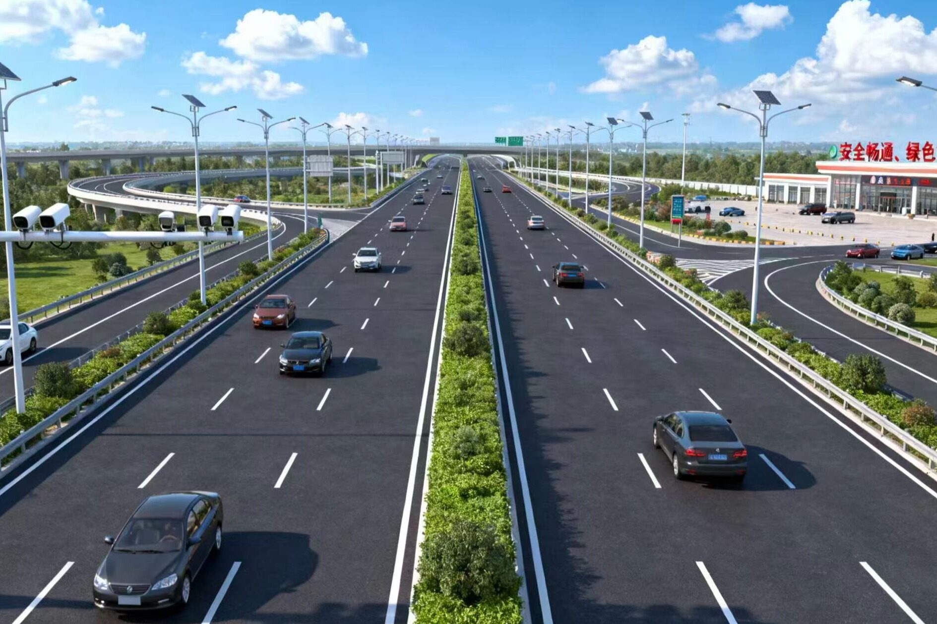工程建设过程中,施工方将聚焦“安全、优质、高效、绿色”四大核心目标,针对性解决既有道路改扩建的技术难点。针对沿线地形地貌复杂、跨河跨路节点多的特点,将采用智能化施工设备与先进工艺,减少对既有交通的干扰;同时严格落实绿色公路建设要求,优化路线设计以避让生态敏感区域,采用节能环保材料与边坡生态防护技术,实现工程建设与生态保护的和谐共生。此外,项目还将融入智慧交通理念,增设交通流量监测、应急预警等智能系统,提升道路运营管理的精细化水平。