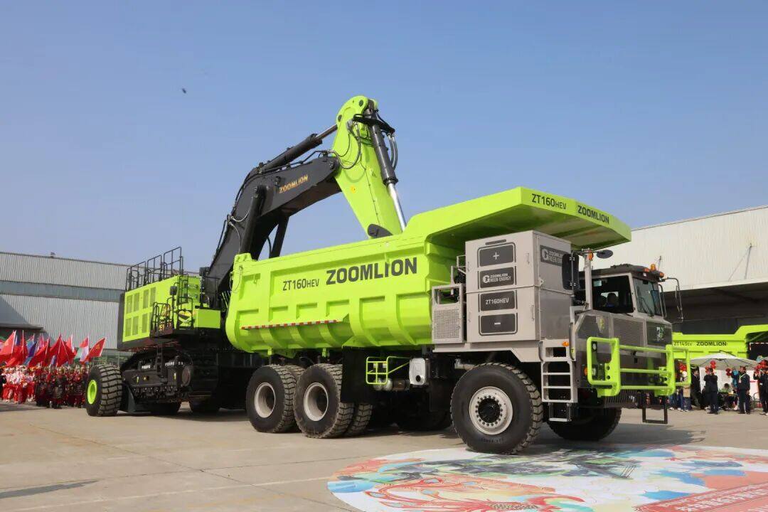 此次活动中,中联重科全面展示了60-1000吨级的电动挖掘机和载重80-100吨级的纯电动矿用宽体车,以及相关补能装备和矿山辅助机械设备,更重磅推出汇聚电动化、智能化领域最新成果的4款矿卡产品——80吨级ZT118EV、90吨级ZT145EV、100吨级ZT165EV纯电车型,以及全球首款百吨级混动宽体车ZT160HEV,以领先的电动化、智能化控制策略,定义安全、高效、可靠的产品新标杆。