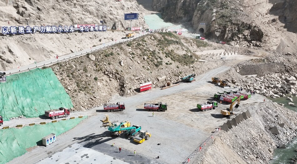 针对龙口段流速大的特点,中国水电四局在工程建设中创新采用在导流洞下游修筑分流丁坝的技术措施,有效降低了截流难度。在备战阶段,项目部备料充足,备料系数达1.8,各类石料、钢筋石笼、合金网兜等物资储备到位。特别准备的150个10至20吨混凝土四面体作为“镇水重器”,在龙口合龙的关键阶段发挥了决定性作用。