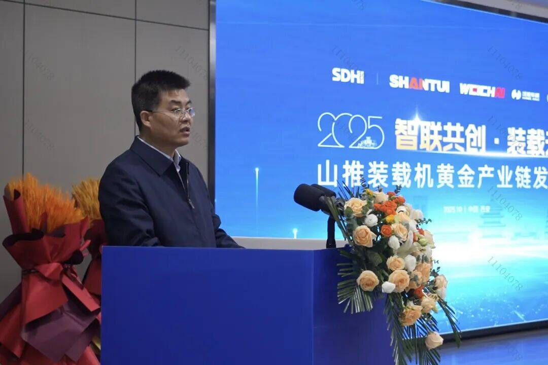 山推装载机业务总监英成业先生致辞,他强调了产业链协同在打造高端装载机产品中的战略意义。并表示:未来,山推将协同产业链伙伴一起,不断突破技术边界,重新定义装载机的价值标准,引领行业发展趋势。