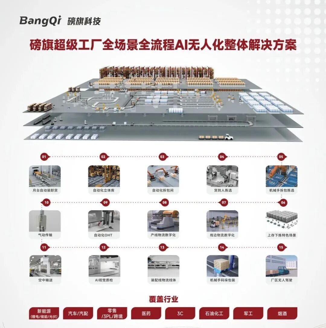 作为全球无人工厂与无人仓库领域的引领者,磅旗科技在中国、北美、欧洲、东南亚等地已落地1000+项目,客户复购率超过90%。这背后,是磅旗对行业Know-How的深刻理解与将复杂需求转化为稳定落地解决方案的卓越能力。