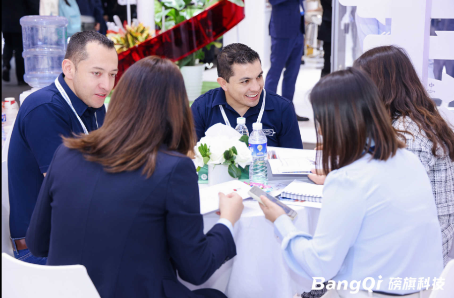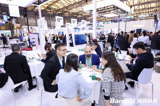 展台另一侧,茶歇区化身“技术交流角”,观众一边品尝咖啡和爆米花等,一边与磅旗技术专家一对一问诊,限量发放的行业案例手册很快被申领一空。