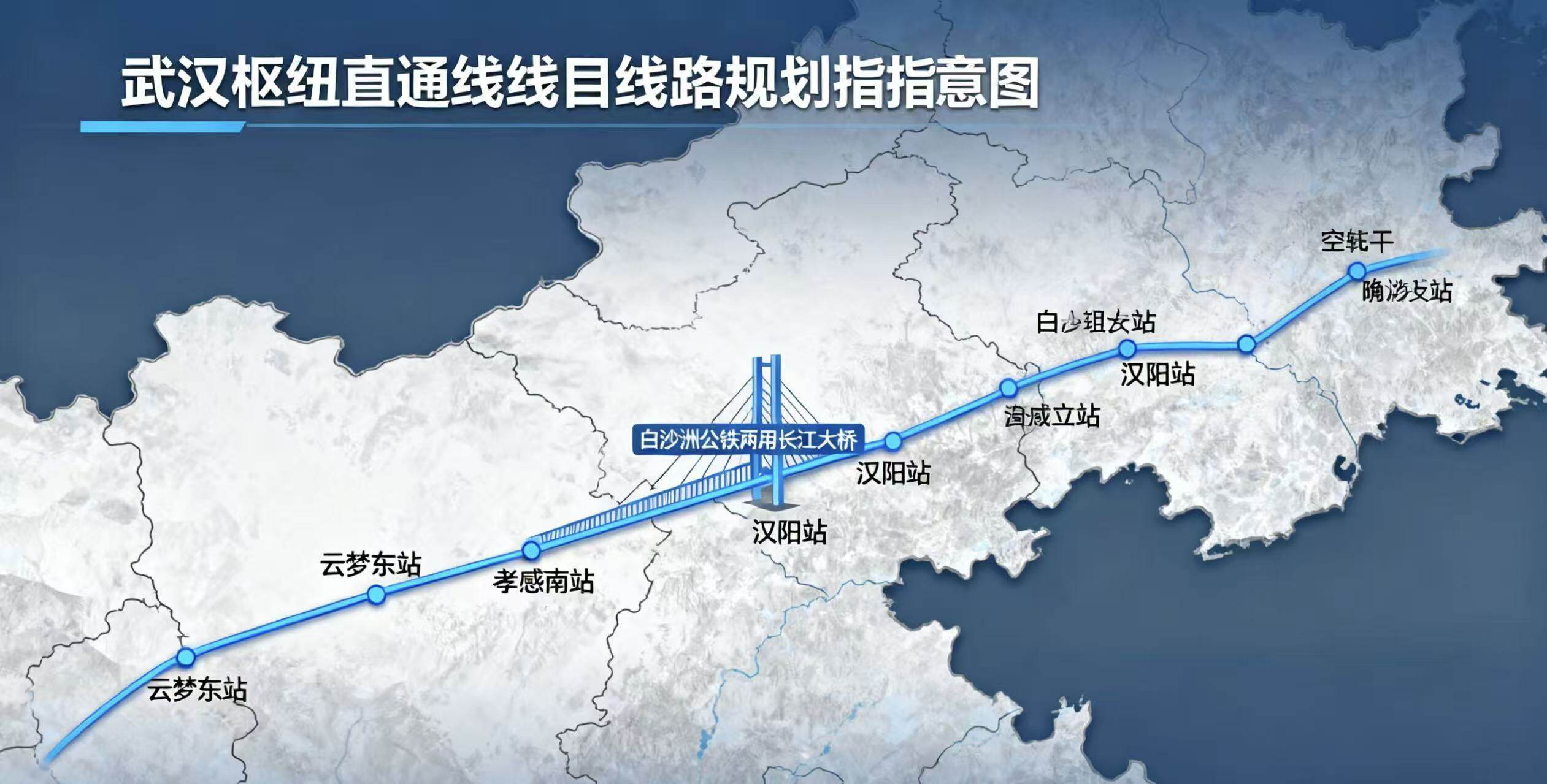 项目位于湖北省境内,线路规划串联孝感、武汉等重要城市,整体呈东西走向。线路西起汉十高铁云梦东站,向东途经孝感南站,深入武汉境内后设新汉阳站等关键站点,最终通过联络线衔接武九高铁、武广高铁等多条干线,新建正线长度约72.19公里,另含联络线及代建工程等配套设施。其中,委托代建的白沙洲公铁两用长江大桥相关桥段,因与主线铁路结构不可分割,成为项目的重要组成部分。在技术标准上,线路分段采用350公里/小时和250公里/小时的设计时速,兼顾高效通行与区域覆盖需求。
