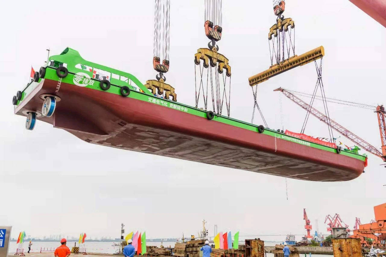在产品层面,新能船业已构建起覆盖LNG动力与纯电动力的全系列产品线。其自主研发的70系列LNG动力船配备30立方米气罐,以14公里/小时航速可续航2200公里,污染物排放量减少超90%,完美适配京杭运河长途运输场景;60系列纯电动力船创新采用"箱式电源换装"模式,15-20分钟即可完成补能,载重量近2000吨,续航200公里,精准匹配内河支流短途倒驳需求。值得一提的是,公司建造的京杭运河最大尺寸LNG动力集装箱船"济宁港航9001"已顺利试航,该船载重近5000吨,可装载161只标准集装箱,续航达2000公里,进一步印证了其在大型船舶领域的技术实力。