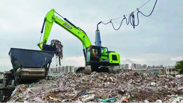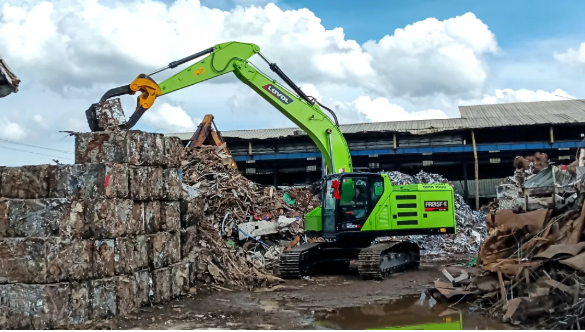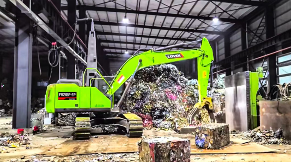 在循环经济与“双碳”战略的双重驱动下,雷沃纯电挖掘机FR215F-E不仅实现了作业过程的零排放,其澎湃的动力输出更在抓取、拆解等作业场景下,展现出超越传统设备的爆发力。