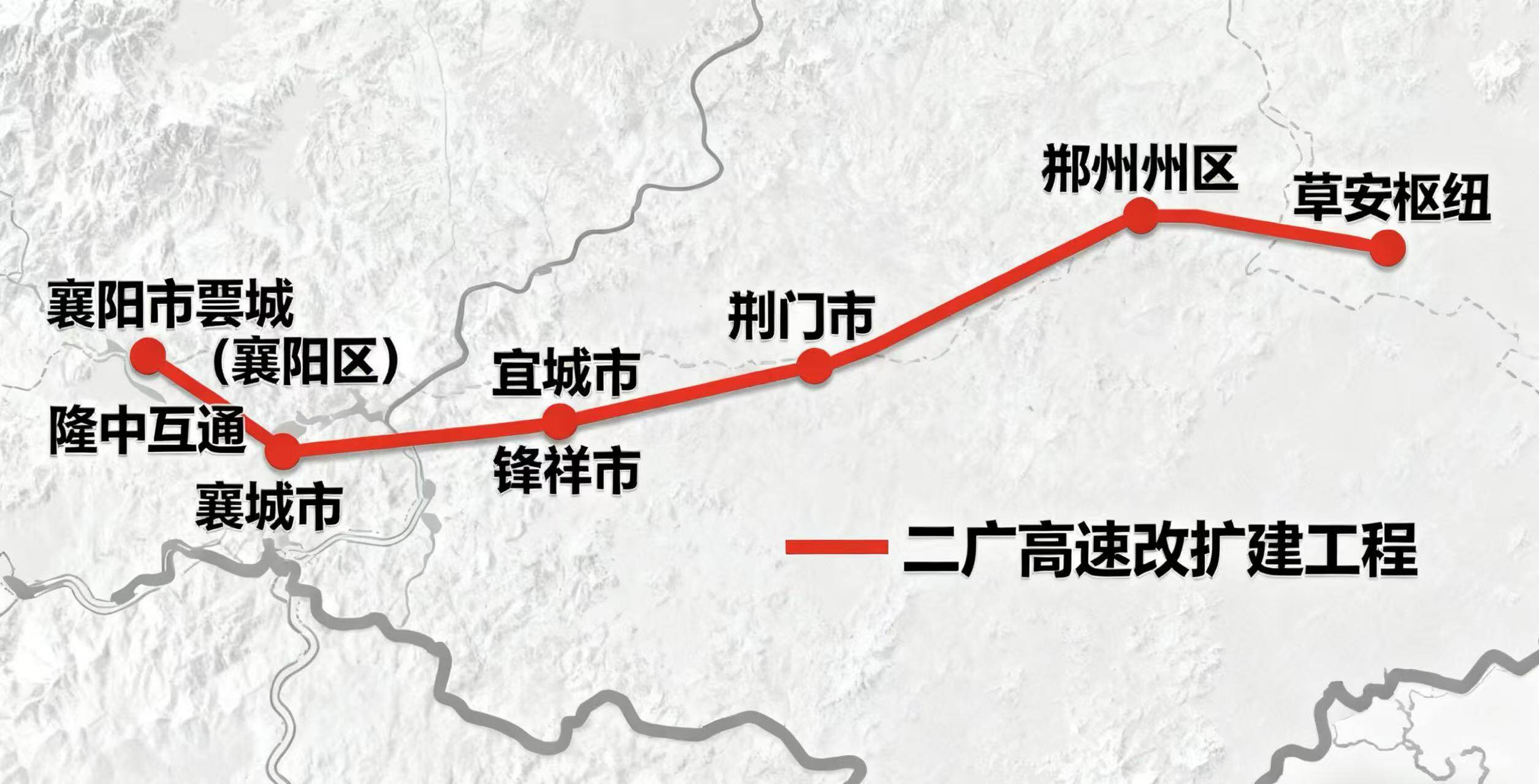 作为国家高速公路网主干线的关键段落,二广高速襄荆段起于襄阳市襄城区隆中互通,向南途经宜城市、荆门市钟祥市、东宝区等多地,止于荆州市荆州区草安枢纽,全长约177.4公里,其中荆门境内里程达119公里,是连接中原地区与江汉平原、湘粤地区的南北向交通核心通道。随着区域经济快速发展,现有双向四车道已无法满足通行需求,节假日拥堵频发、物流效率受限等问题日益突出,成为制约“襄十随神”与“宜荆荆”两大城市群联动发展的交通瓶颈。此次改扩建工程将彻底破解这一困境,采用双向八车道高速公路标准建设,设计时速120公里,路基宽42米,以既有公路走廊为基础,主要采用两侧拼宽模式施工,全线共设置互通14处,涵盖胡集、荆门北、五里铺等多个关键节点,建成后通行能力将实现质的飞跃。