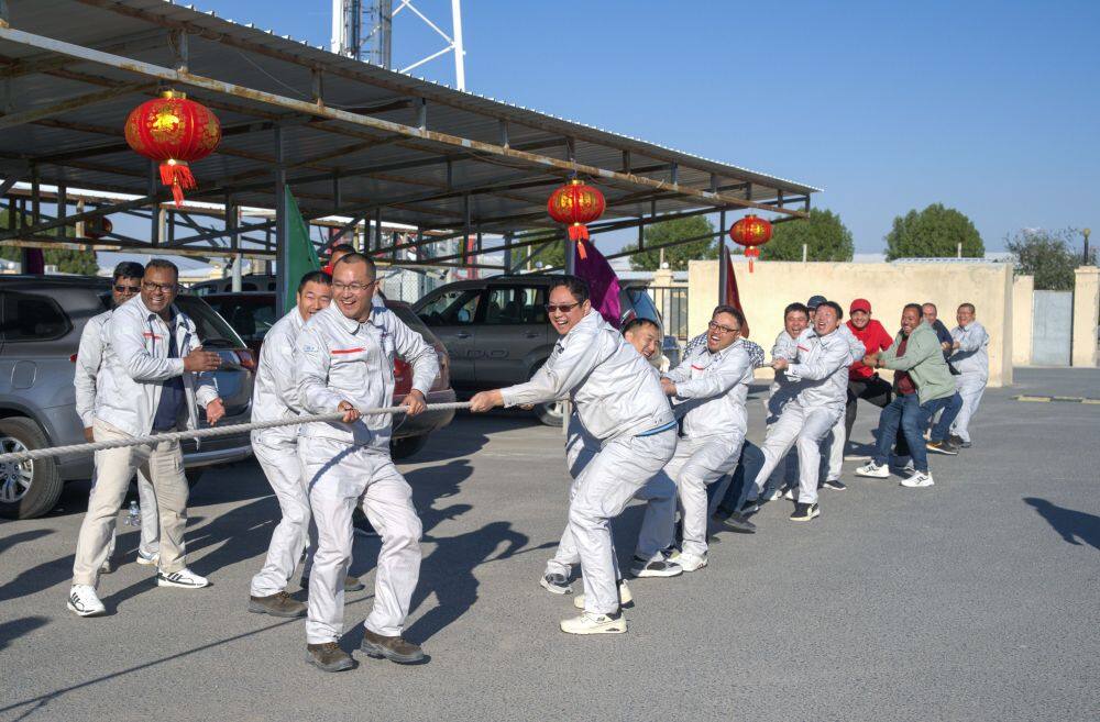 2024年2月10日,正值中国传统节日春节,负责建设科威特阿卜杜拉新城项目的中国能建葛洲坝集团的中外职工在科威特杰赫拉省举行拔河比赛。