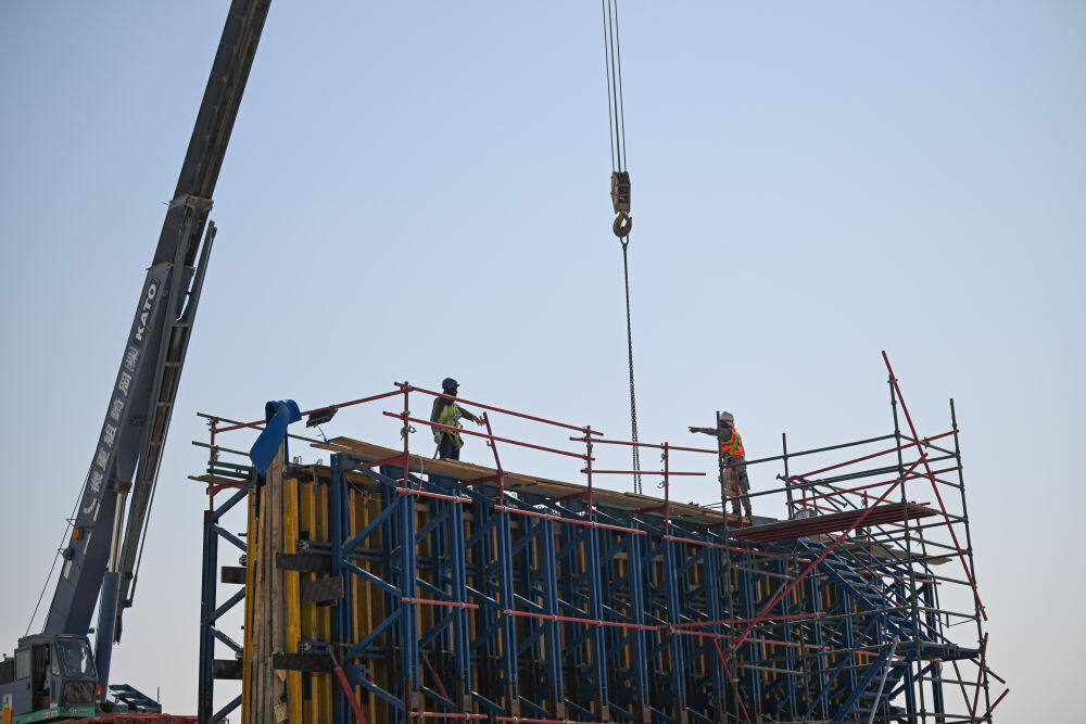 夯基垒台、立柱架梁,中国建设者正以汗水与匠心,在科威特沙漠中描绘一座现代化新城的壮丽轮廓,为中科合作铸就新的里程碑。