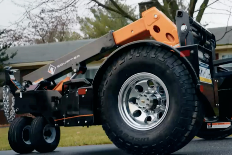 这款多功能全地形叉车可由皮卡车牵引,无需拖车或专用设备即可运输。汽油驱动的远程控制装置可举升1360公斤左右的重量,并配有一个举升高度为2.43米的伸缩臂。该装置的宽轮胎使其能够在草坪上行驶而不会破坏景观。