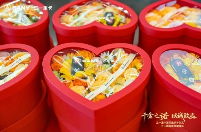 2018年,500位卡友“看图订车”,53秒抢空首批英雄版重卡,铸就重卡行业传奇。七载初心不改,三一重卡践行“千金之诺,以诚致远”,欢迎第四批英雄车主“回家”——为28位种子用户免费换新车。这是历次换车规模最大的一次,让“卡车传递爱”的暖意在长沙智联重卡产业园满溢。