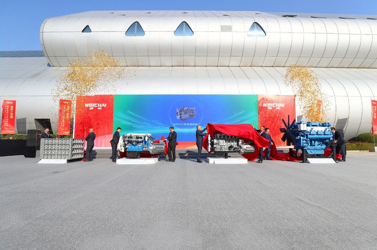本次会议的核心亮点,是潍柴工程机械全新动力产品的重磅发布——WP17T甲醇增程、WP16NG天然气增程、12M25发动机及工程机械专属CTB电池等四大新品。中国工程机械工业协会会长苏子孟、秘书长吴培国与潍柴合作伙伴代表、潍柴相关领导共同为新产品揭幕,见证行业动力新标杆的亮相。