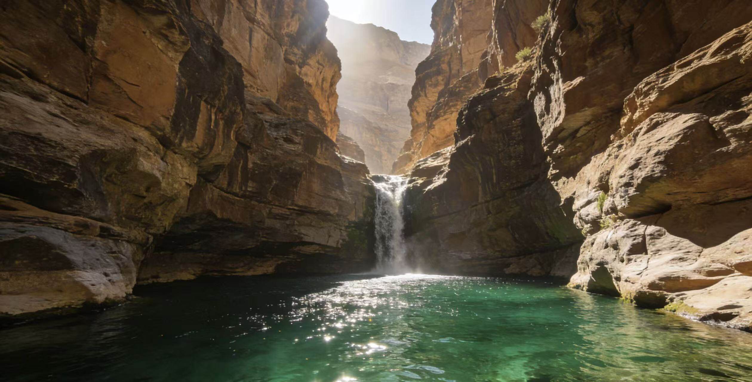 山海交织是阿曼最动人的底色。3165公里海岸线上,达亚马尼亚特群岛的清澈海水是浮潜者的天堂,海龟与五彩鱼群相伴左右,马斯喀特湾90%的海豚邂逅概率堪称惊喜。深入内陆,瓦希巴沙漠的金色沙丘可体验冲沙与星空露营,贝都因人的营地中,阿拉伯咖啡与椰枣的香甜萦绕鼻尖。绿山之上,2025年新开放的缆车8分钟登顶,能俯瞰峡湾与沙漠同框的奇景,而瓦迪·沙布的隐秘水潭与瀑布,更是徒步者心中的“绿洲秘境”。