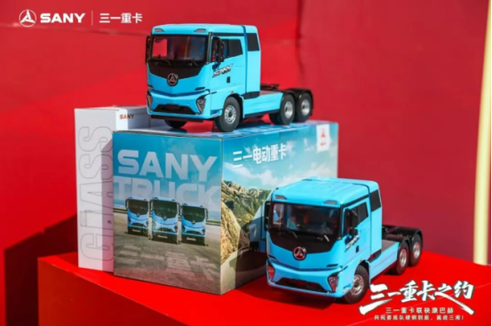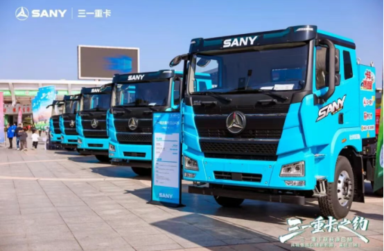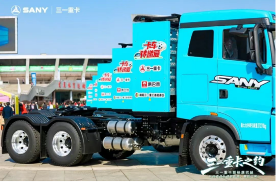 赛场外,10台三一重卡组成“钢铁方阵”霸气进驻娄底体育中心,江山平顶425、高顶425、SE588三款硬核车型列队迎宾,气场全开为赛事护航,成了耀眼的“天海蓝风景线”。