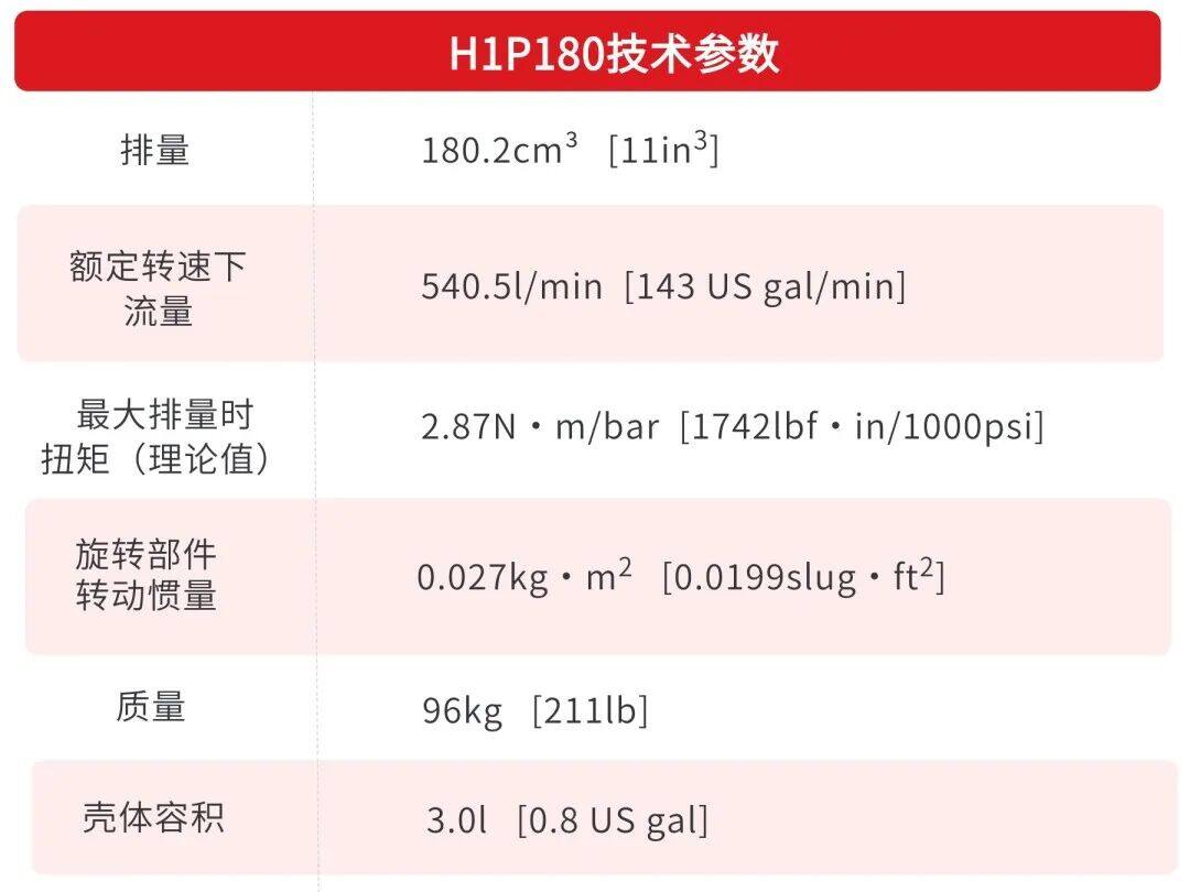基于已验证的H1P平台,H1P180和其他规格的H1P泵共享控制方式和传感器。与备受推崇的H1P家族其他成员一样,新的H1P180可帮助设备制造商实现性能、效率和利润的最大化。截至目前,在全球范围内,已有数以百万计的H1泵正在辛勤工作。