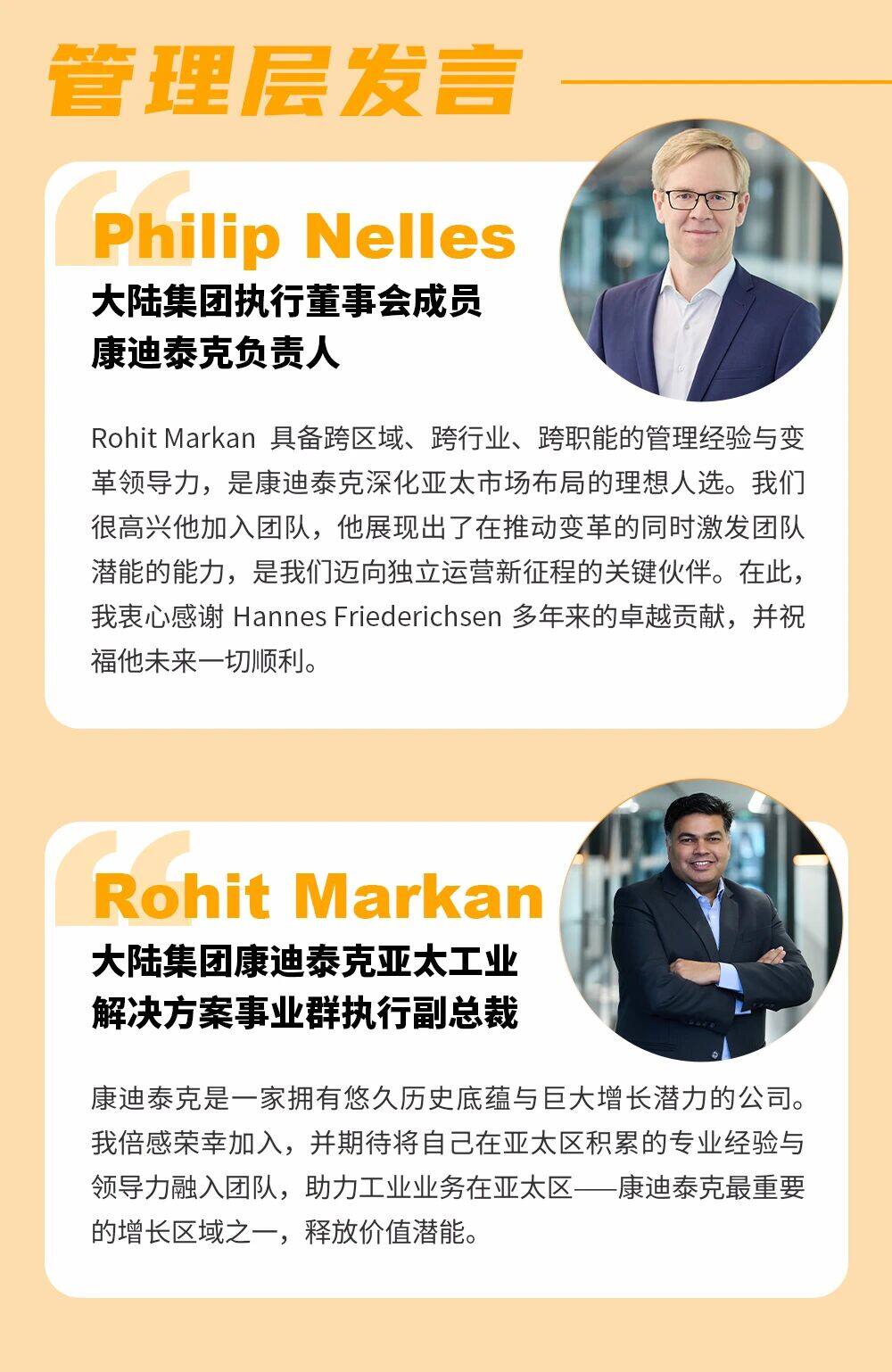 中国上海,2025年12月11日。大陆集团康迪泰克正式宣布:Rohit Markan自2025年11月17日起担任大陆集团康迪泰克亚太工业解决方案事业群执行副总裁,直接向大陆集团执行董事会成员、康迪泰克负责人Philip Nelles汇报。此前,他曾任Roquette亚太区首席执行官,并在亚太多个区域、多个职能管理岗位上积累了丰富的领导经验。