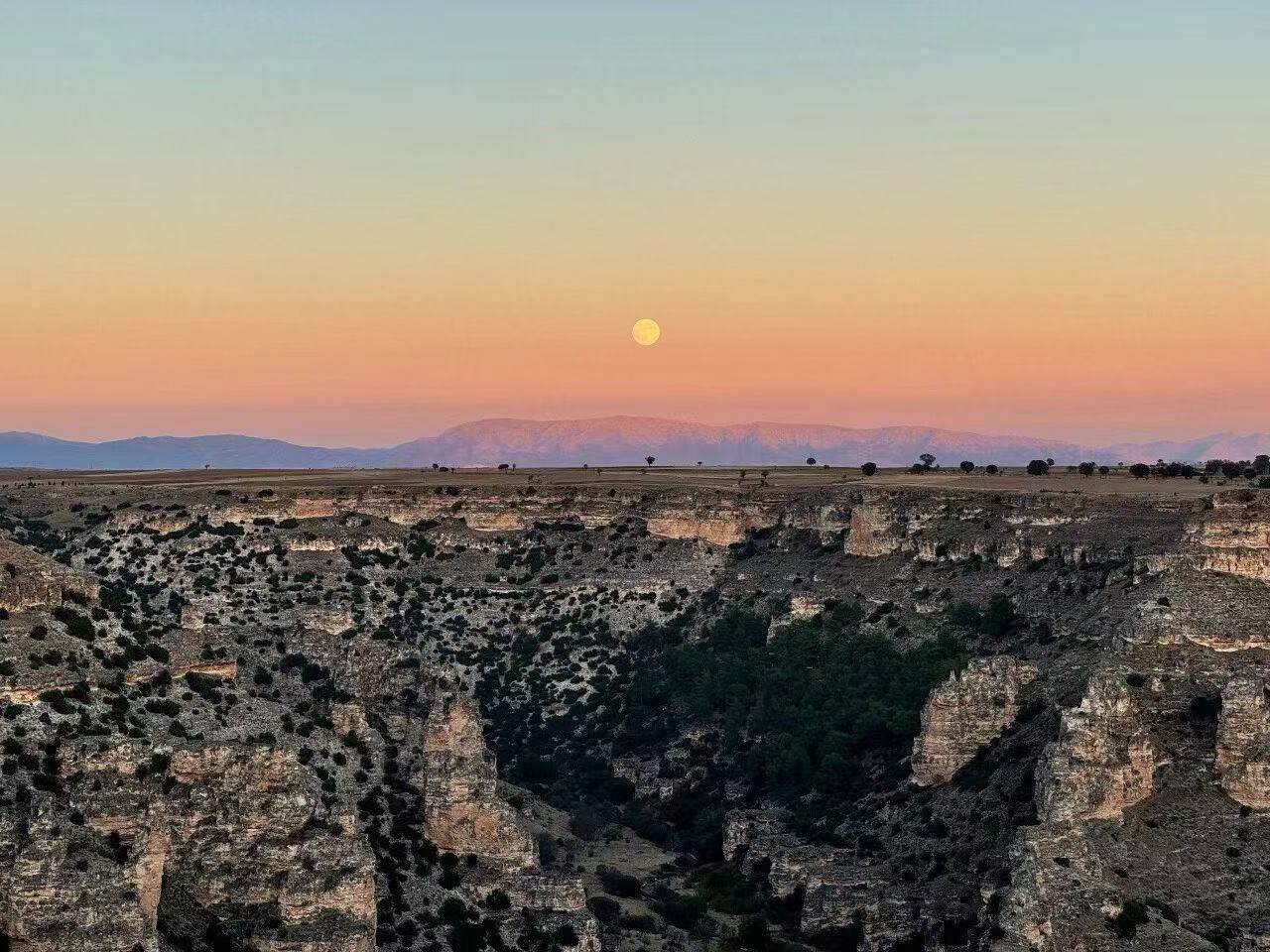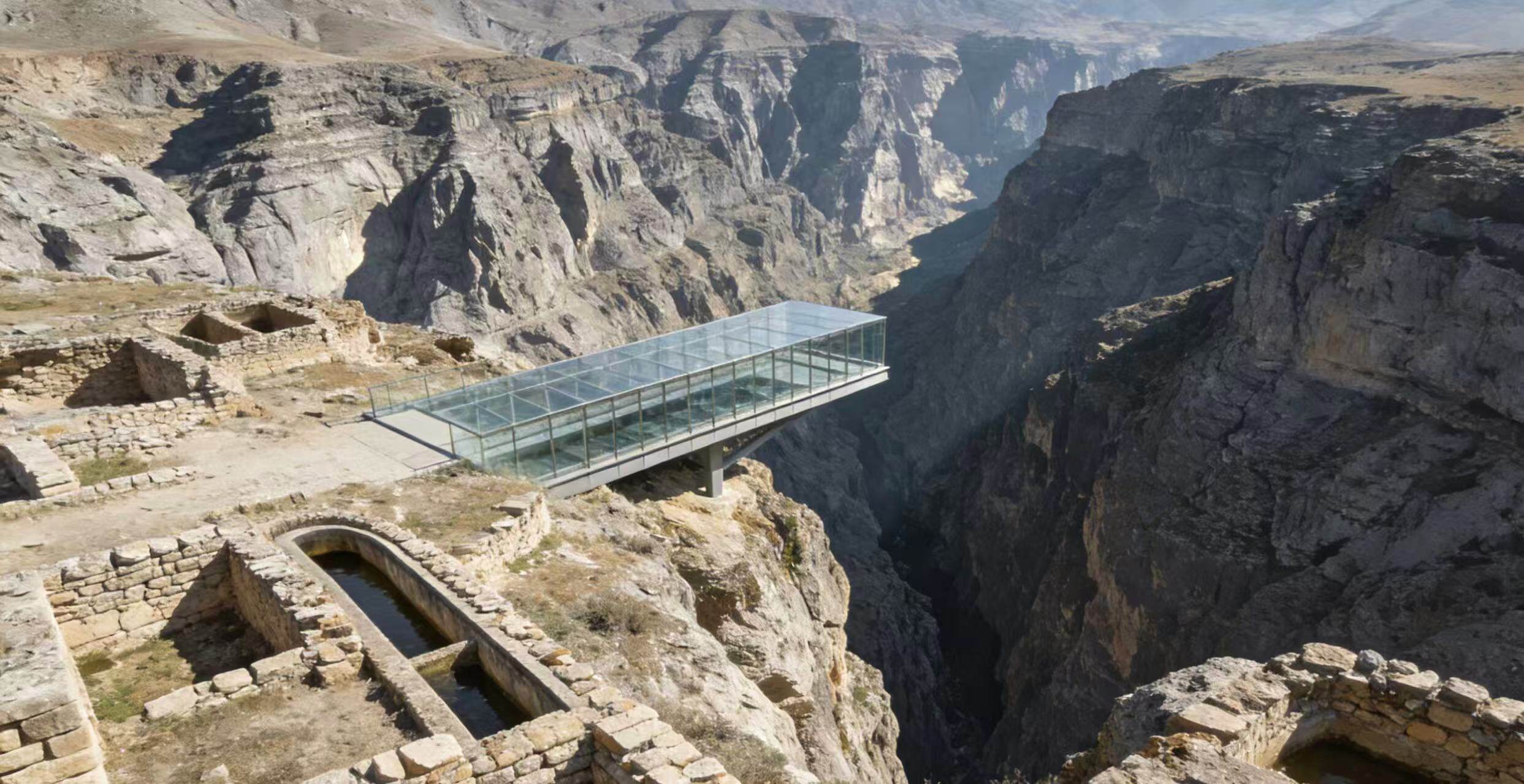 如果说古城是人文的史诗,乌沙克的自然景观便是大地的杰作。距离市中心33公里的乌鲁贝伊峡谷,以深邃险峻的地貌被誉为“世界第二大峡谷”,站在悬空玻璃观景台上,脚下是壁立千仞的崖壁,远处是蜿蜒流淌的河水,风穿过峡谷时的呼啸,仿佛是亿万年地质运动的余音。更奇妙的是,自然奇景与人文遗迹在此共生,峡谷深处藏着古代水道与洞穴遗址,徒步途中随时可能与两千年前的文明碎片不期而遇。