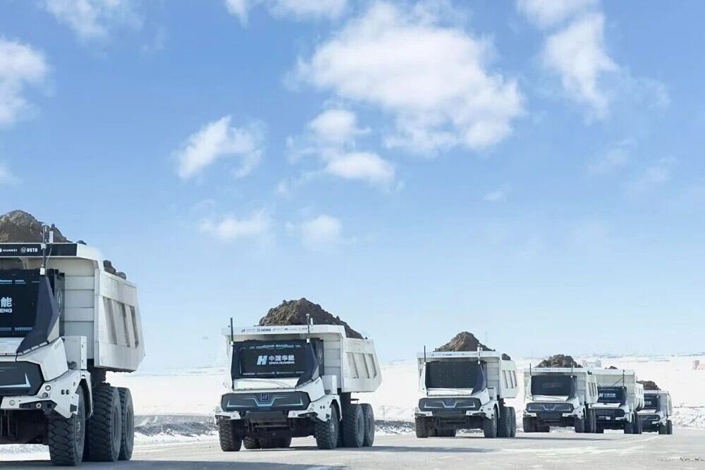 从夏日的绿草如茵到冬日的白雪皑皑,内蒙古华能伊敏露天矿的年均温差超60摄氏度。12月,气温已降至零下30多度,白雪覆盖的矿坑中,百台无人纯电矿卡正以“钢铁洪流”之势穿梭前行。