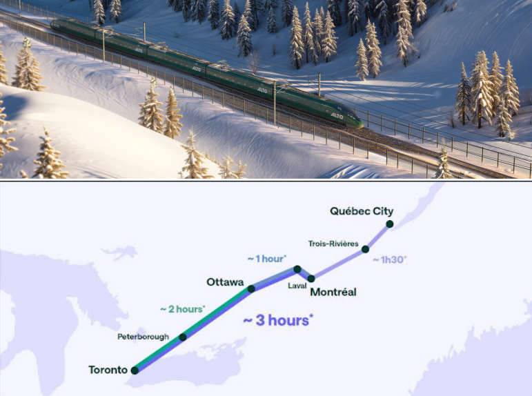 该项目初期路段全长约200公里,预计于2029年正式动工,相关前期采购将于2026年启动。整体阿尔托高铁网络规划连接多伦多至魁北克市,全长约1000公里,设计时速最高300公里。建成后,多伦多至蒙特利尔的旅行时间将缩短一半,有望缩短至约三小时。作为七大工业国中唯一没有高速铁路的国家,阿尔托项目将填补加拿大在现代化交通领域的长期空白。