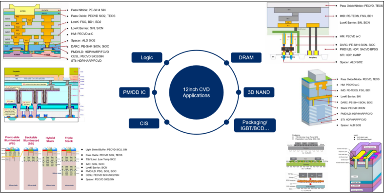 适用领域:集成电路逻辑芯片(FinFET、GAA)、存储芯片(3D NAND, DRAM)、图像传感器(CIS)、微机电系统(MEMS)、功率半导体与先进封装等领域。