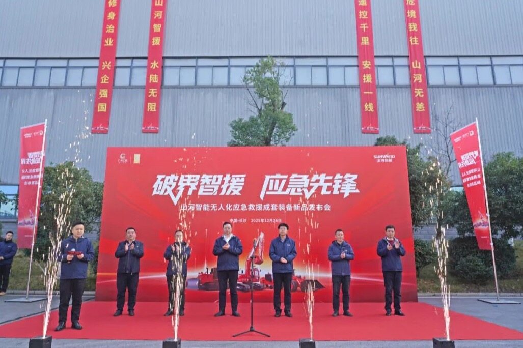 2025年12月26日,山河智能成功举办“破界智援・应急先锋”无人化应急救援成套装备新品发布会,重磅推出国内首创的“智能遥控推土机+智能遥控挖掘机+智能遥控装载机”成套装备及配套解决方案,以产品集群形式彰显企业应急救援领域智能化、成套化优势,为我国“全灾种、大应急”体系注入全新科技动能。