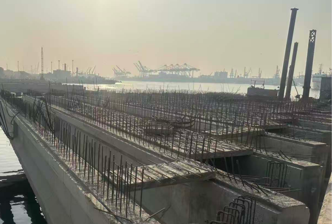 达苏项目的突破并非孤例,在巴基斯坦其他地区,中国土木承建的项目正同步跑出“加速度”。在南部沿海的经济中心卡拉奇,港口东西码头连接桥项目进展神速:87根岸上桩已完成83根,85根水中桩更是已全部竣工,项目重心已全面转向架梁及上部结构施工,向着最终贯通目标发起冲刺。