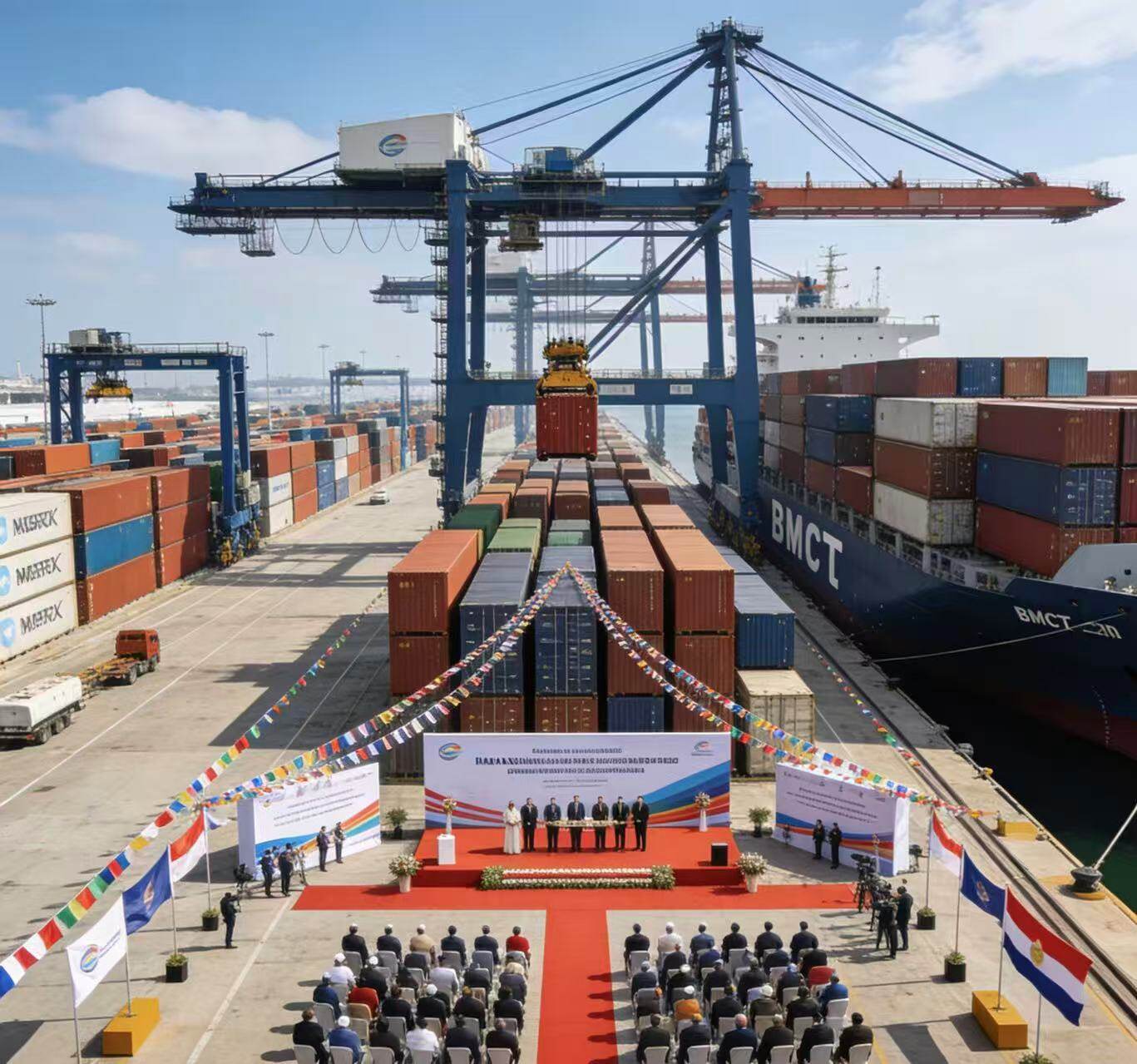港口硬核基础设施为高效运转提供支撑。那瓦舍瓦港拥有5大专业化集装箱码头,其中NSICT码头最大吃水深度达16.2米,可停靠超大型集装箱船舶;各码头配备超巴拿马型岸桥、轨道吊等现代化设备,NSIGT码头引入的振华重工双吊岸桥,进一步提升装卸效率。近五年,港口加速升级改造,通过地主港模式引入社会资本,完成NSFT码头设备更新,推动BMCT码头二期投产,2025年总集装箱处理能力突破1000万TEU;同步推进的专用货运走廊建设,将铁路集疏运能力从每日27列提升至100列,大幅缓解陆侧拥堵。