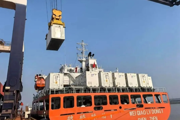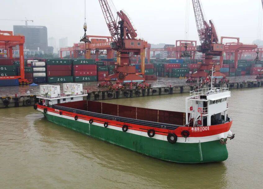 船上搭载的8套集装箱式电源支持高效充换电,结合全球领先的岸基充换电网络,将助力滨州港、套尔河港区打造“绿色生态走廊”。该船投入运营后,将带来显著的环保效应。按照每月10个航次计算,该船全年预计可减碳9000吨、减油2800吨。