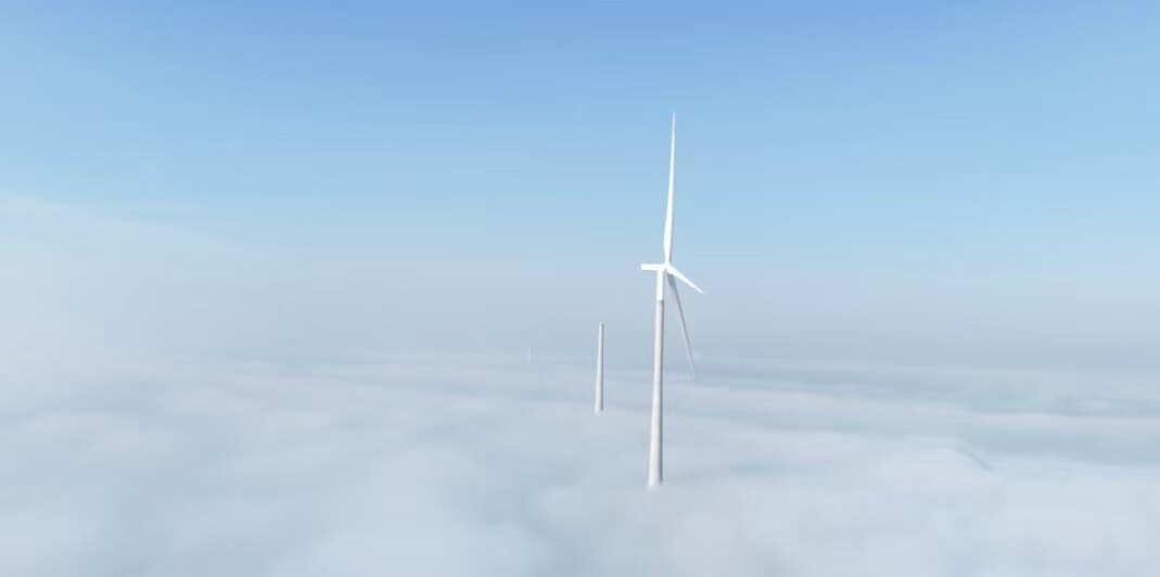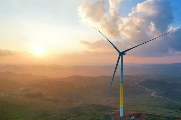 在高空精准吊装环节,针对地基松软易沉降的问题,团队对吊装平台实施“分层换填”处理,为千吨级吊装设备筑牢稳固“底座”;塔筒吊装严格执行“一机一方案”,应用智能化实时监测技术,将41环混塔环片精准吊装就位,构筑起最高148.4米的混塔结构。此外,项目运用BIM技术开展“虚拟预拼装”,精准测算起吊角度与回转半径,搭配施工记录仪与无人机巡航的实时画面,实现吊装全过程可视、可控,最终在3天内高效完成首台风机吊装任务。关键词:新能源最新报道、风电项目、云中风电