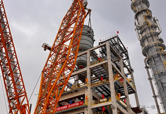 2026年1月16日,荣盛新材料(舟山)有限公司建设的金塘新材料项目迎来关键节点。PEO装置反应框架内的四台核心大型设备全部成功吊装就位。这四台设备是工艺流程的“心脏”,它们的成功安装对整个项目具有里程碑意义。