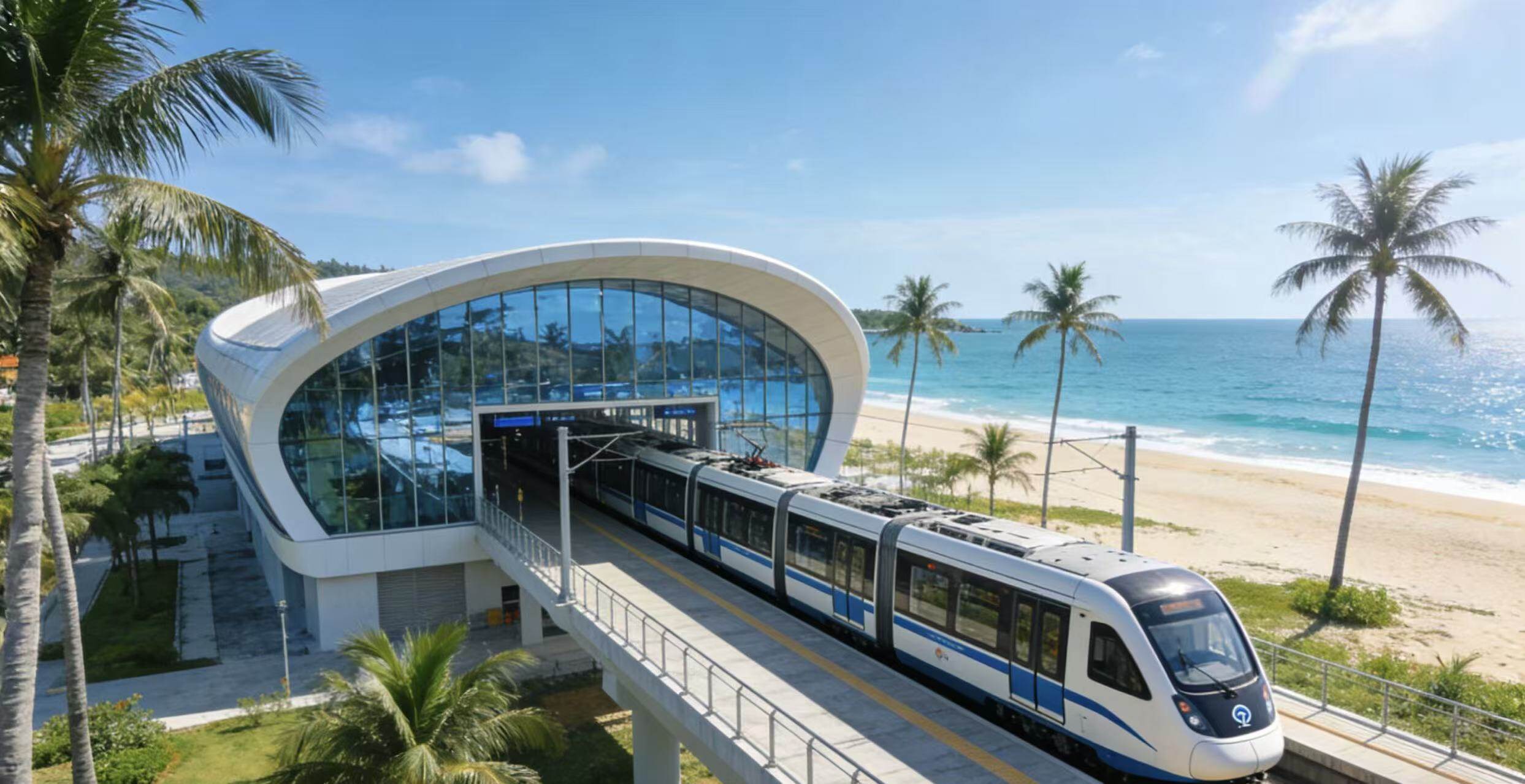 为满足游客的观光需求,列车采用超大尺寸观景车窗设计,优化玻璃倾角与视野范围,让乘客在行进中即可将海岛的椰林沙滩、湛蓝海景尽收眼底;考虑到旅游出行的行李携带需求,车厢内配置了可调节高度的大尺寸行李架,同时预留轮椅专用区域与母婴照料空间,兼顾实用性与人文关怀。针对海岛高湿度、高盐雾的腐蚀环境,列车车体选用耐腐蚀性优异的铝合金材料,关键部件采用密封式防护设计,通过严苛的盐雾试验与环境模拟测试,确保列车在长期运营中保持稳定性能,大幅降低运维成本。