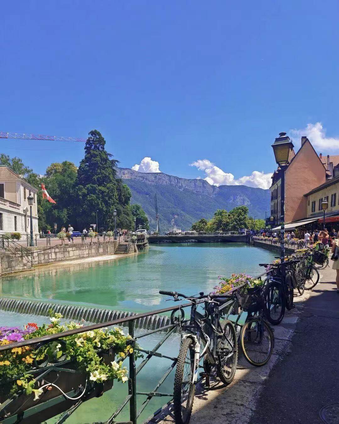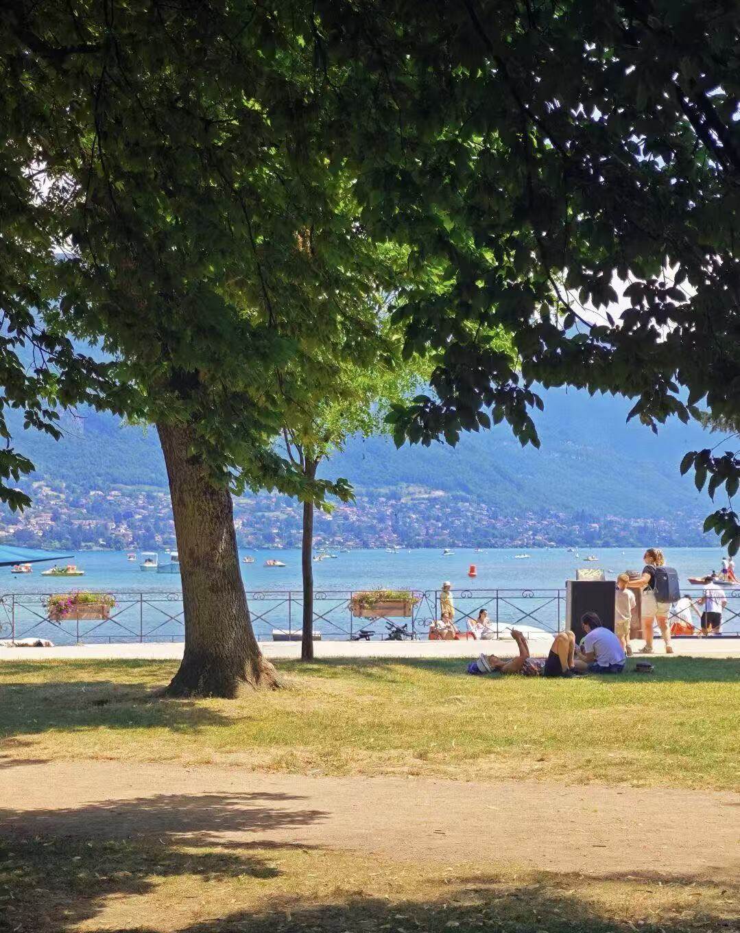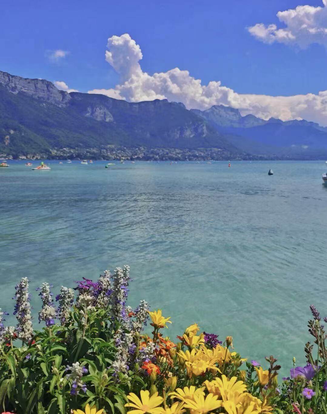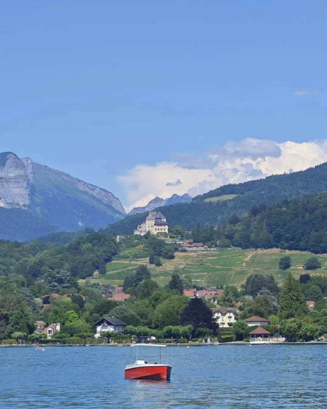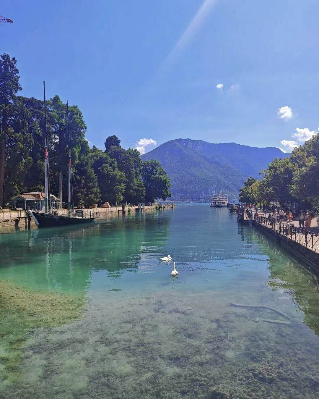 告别里昂的市井热闹,便奔赴安纳西的画境。澄澈的湖水像一块碧绿的翡翠,倒映着远处的阿尔卑斯山和岸边的彩色木屋,微风拂过,湖面泛起层层涟漪,连空气里都带着清甜的气息。