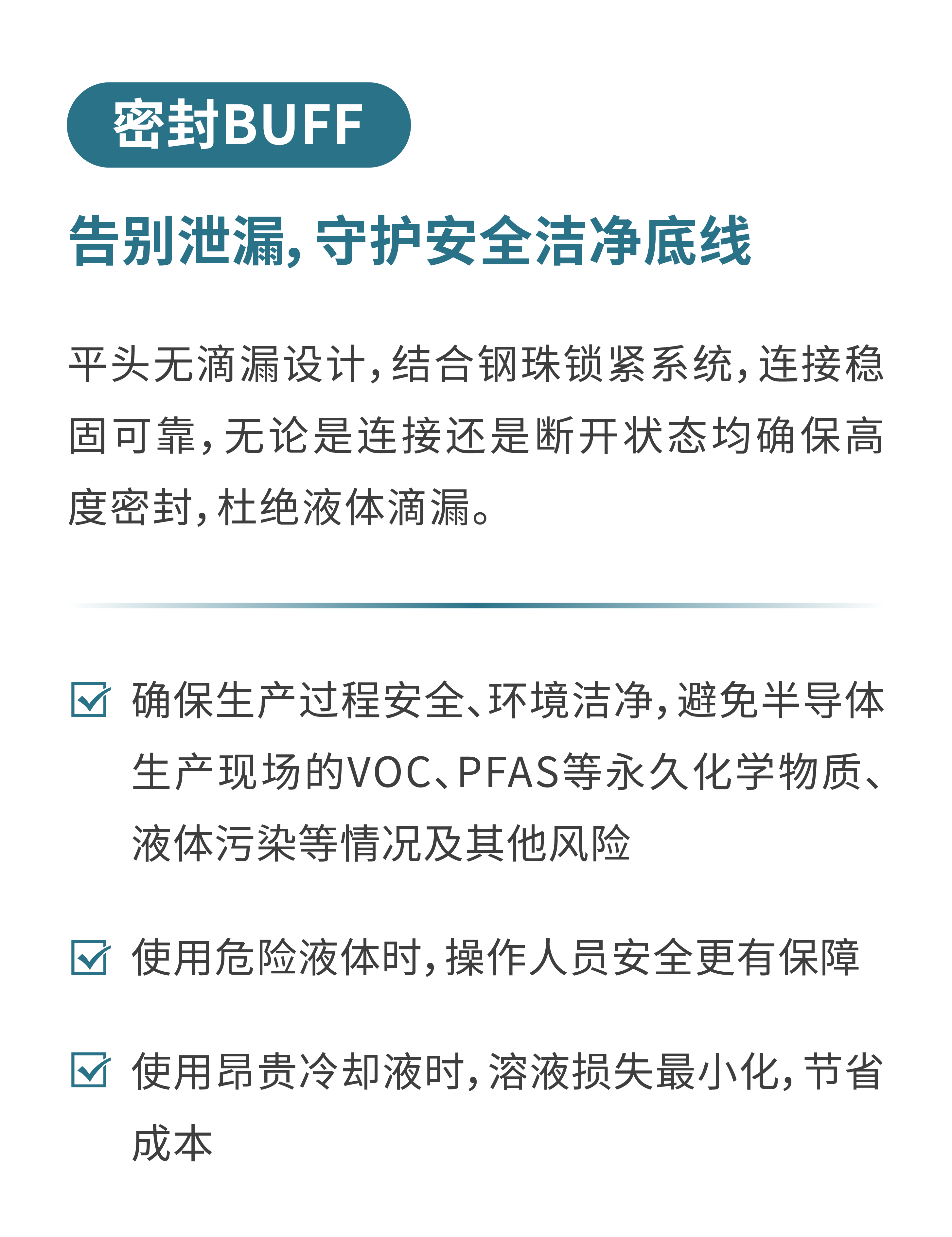 对于半导体行业而言,安全与洁净是生产底线,良率与效率是核心指标。半导体制造中,可靠的流体连接不仅有助于提高产品质量、安全性和生产效率,还能带来显著的投资回报。