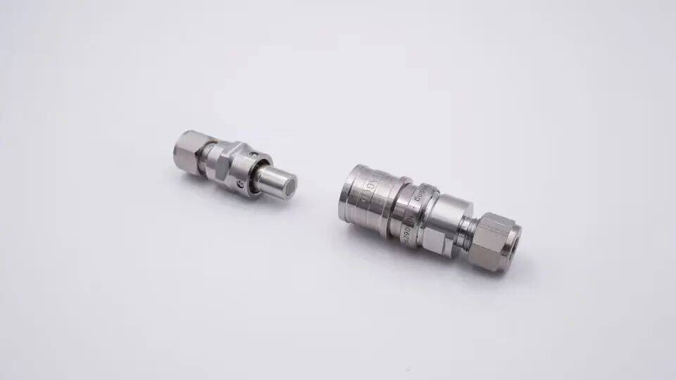 DAG集成“平头快速接头+双卡套末端”的技术优势。一方面,接头为平面阀芯,断开时阀芯运动逐步截断流道,可实现“断开不漏”;另一方面,采用半导体行业常用卡套末端,确保接头与管道“稳固连接”。