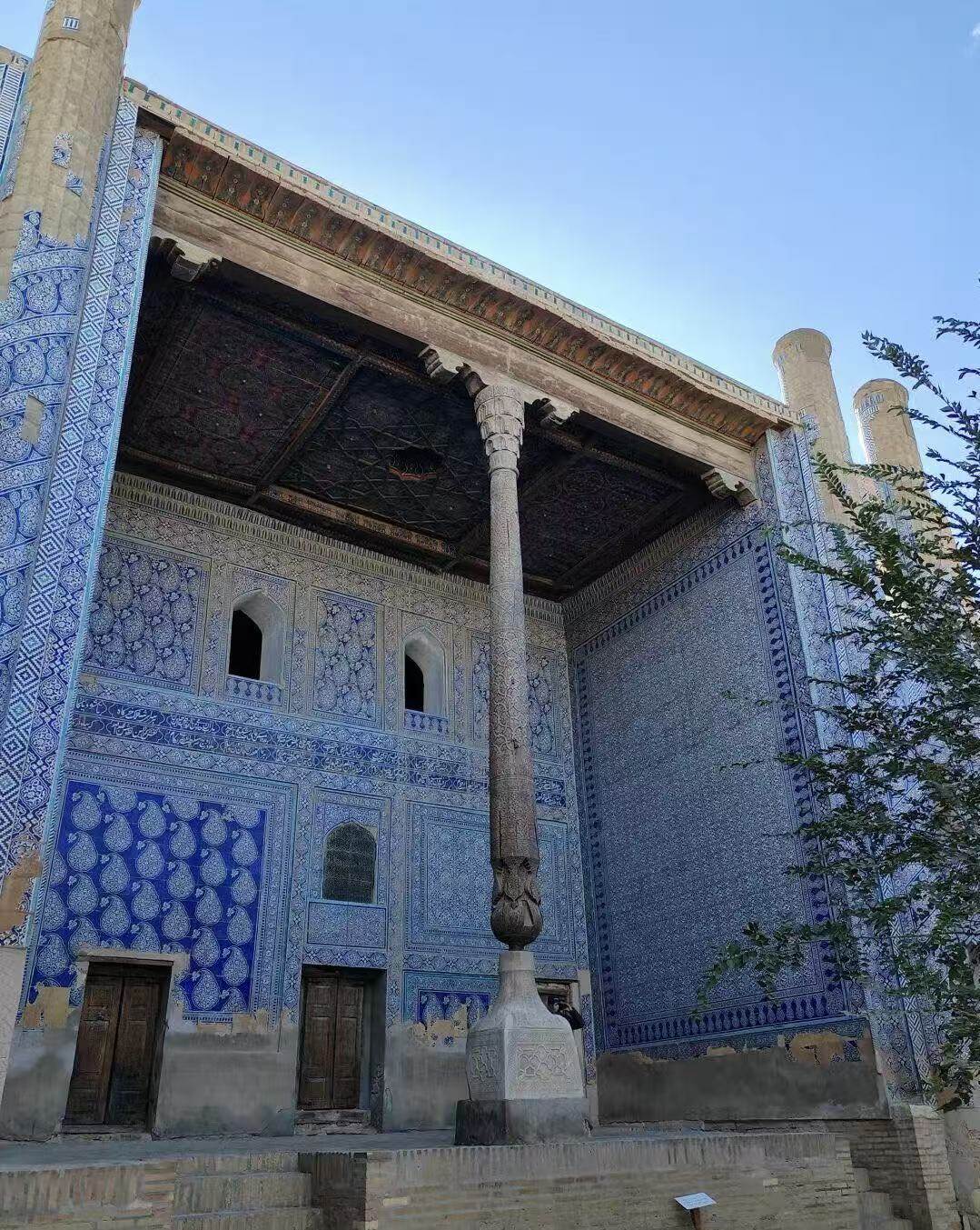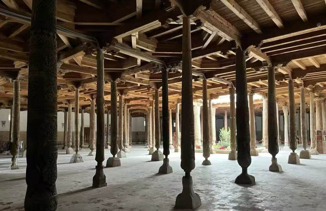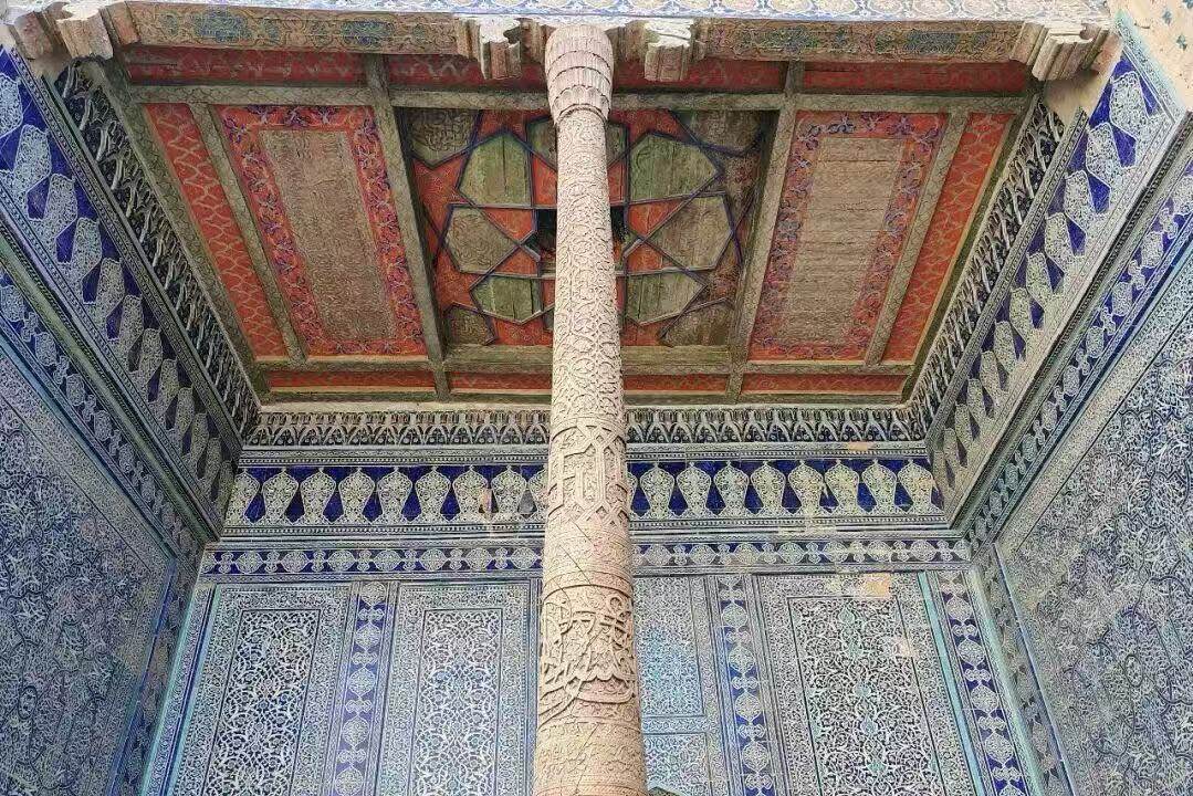 以218根木柱支撑的礼拜大厅著称,柱子雕刻工艺精湛,体现了中亚木雕艺术的巅峰。