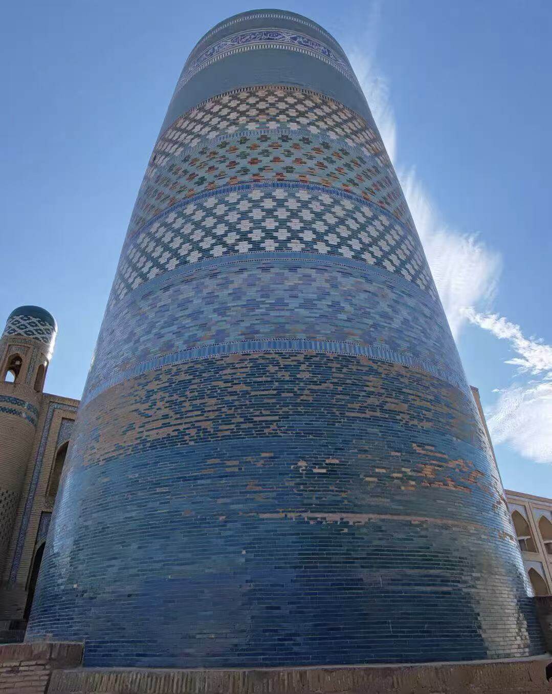 霍贾宣礼塔塔是由希瓦汗国总理伊斯兰霍贾倡议于1908年至1910年建造。这座塔不仅是希瓦最高的塔,也是整个乌兹别克斯坦最高的塔。其高57米,底座直径9.5米,登上塔顶可以俯瞰整座希瓦城,就是爬起来又闷又热又累还贵。