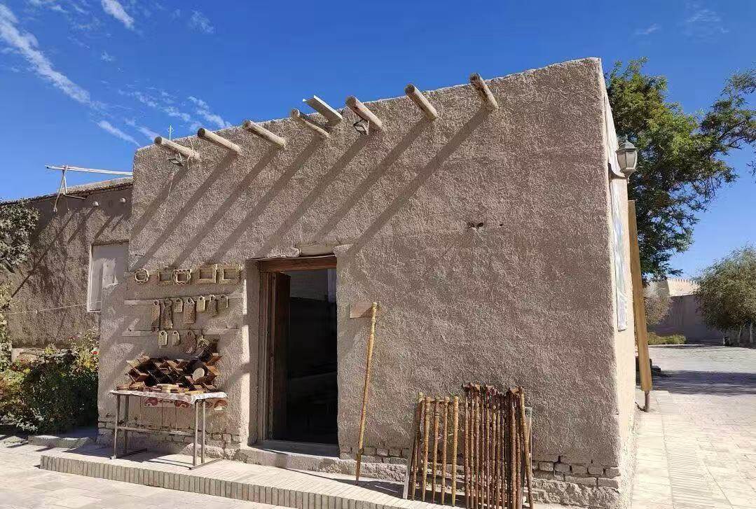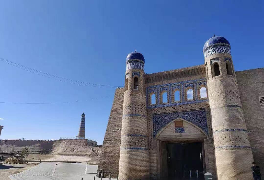 希瓦的建筑风格融合了波斯、突厥和阿拉伯元素。外观多以黄褐色土坯为基调,而瓷砖装饰则以蓝色、青绿色为主,形成鲜明对比。