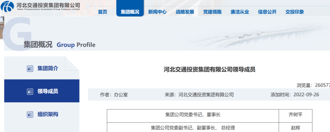 另据河北交投集团官网,赵辉现任河北交投集团党委副书记、副董事长、总经理。