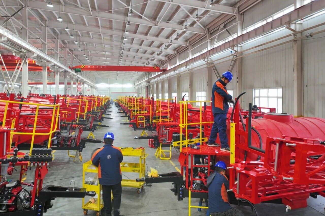 在乌苏厂区,这座投入超5亿元打造的西北领先智能生产基地,制造车间内采棉机与小农机产线齐头并进,智能化设备与熟练技工默契配合,订单赶制节奏紧凑,生产氛围热烈高涨。作为钵施然的“主力工厂”,四行、六行打包采棉机、小农机系列产品的赶制工作有条不紊。针对春耕备耕的市场需求,这里集中发力牵引式打药机等适配性强的产品,从零部件组装到整机检测,每一个环节都严格遵循标准化流程。工人们熟练操作智能装配设备,将全电控操作、大容量作业仓等优势特性融入产品,工人们加班加点完成焊接、装配、调试等工序,确保每一台机器保质保量按时交付,满足全疆乃至中亚市场的刚性需求。