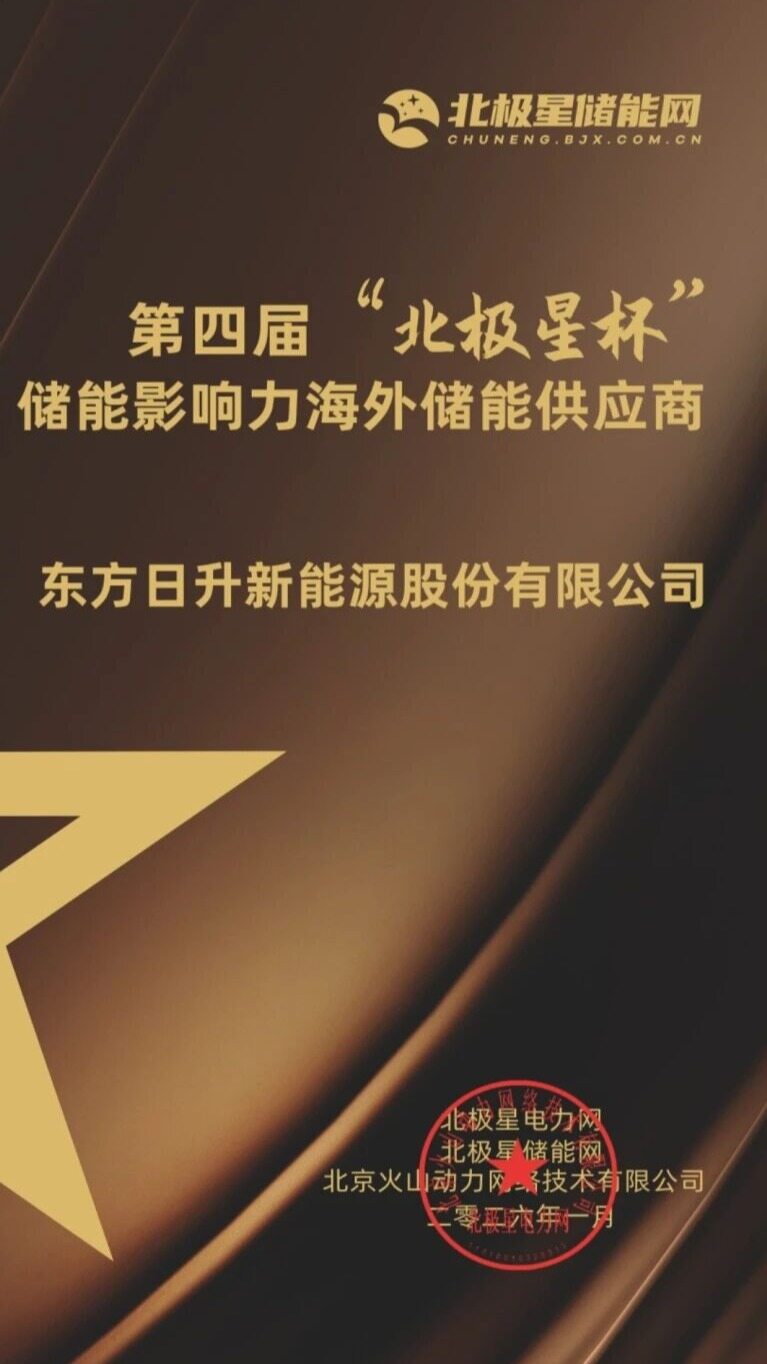 近日,在第四届“北极星杯”储能影响力企业评选中,东方日升凭借在全球储能市场的卓越表现与深远布局,获得“储能影响力海外储能供应商”奖项。