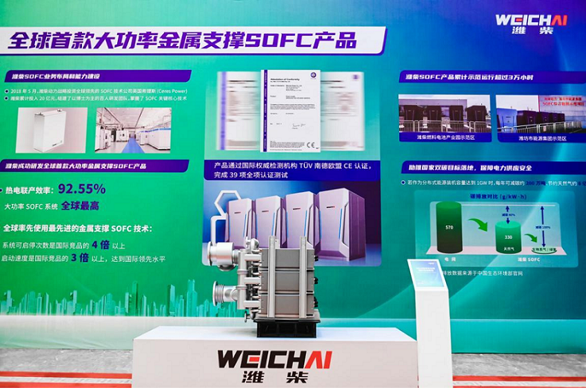 如潍柴新一代SOFC(固体氧化物燃料电池)产品最高发电效率超过65%,性能指标达到国际领先水平。目前,潍柴SOFC产品多个示范项目已经成功运行,以潍柴100kW SOFC发电产品为例,目前已在潍坊市能源集团实现商业化应用,成功交付国家电投集团等,展现出潍柴在前沿领域的竞争力。