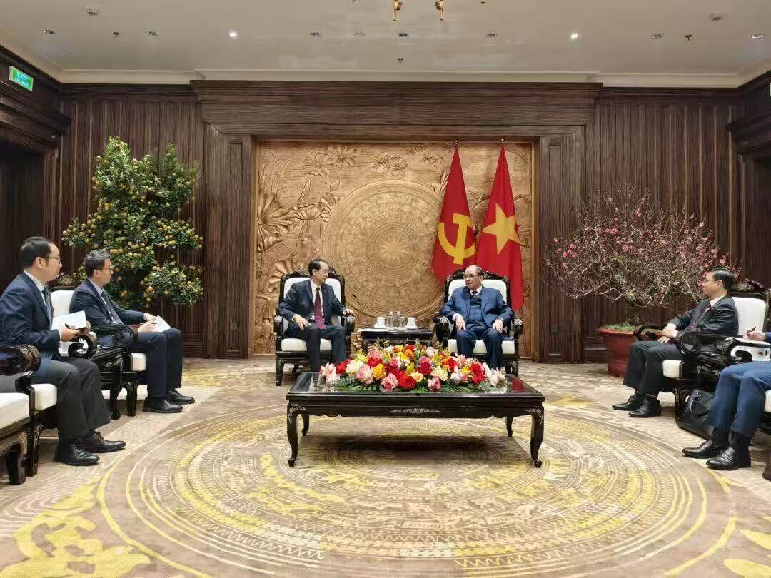 何炜向农德孟致以新春问候和良好祝愿,热烈祝贺越共十四大胜利闭幕,表示在两党最高领导人战略引领下,中越携手走好社会主义道路、高水平构建命运共同体的战略共识和政治共识不断凝聚,围绕治国理政经验交流的契合点日益增多,开展高层次互利合作空间持续拓展。中方愿同越方共同努力,推动中越关系在第二个“高光时刻”行稳致远。